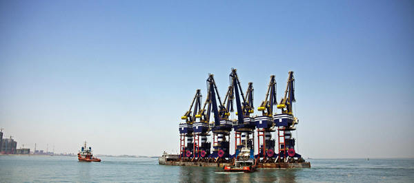 5月4日,青島海西重機承制的煙臺港8臺MQ2537門座起重機順利起航發(fā)運,這是繼3月中旬 10臺MQ4045門座起重機交付業(yè)主使用以來,今年發(fā)往煙臺港的第二批次港機設備。