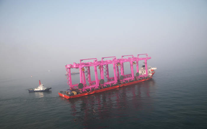 1月1日,青島海西重機(jī)為SNCT(韓國鮮光新港集裝箱碼頭有限公司)制造的8臺40噸自動化軌道吊第一批次(4臺)順利出海,成為2017年海西重機(jī)首批發(fā)運(yùn)的港機(jī)設(shè)備。