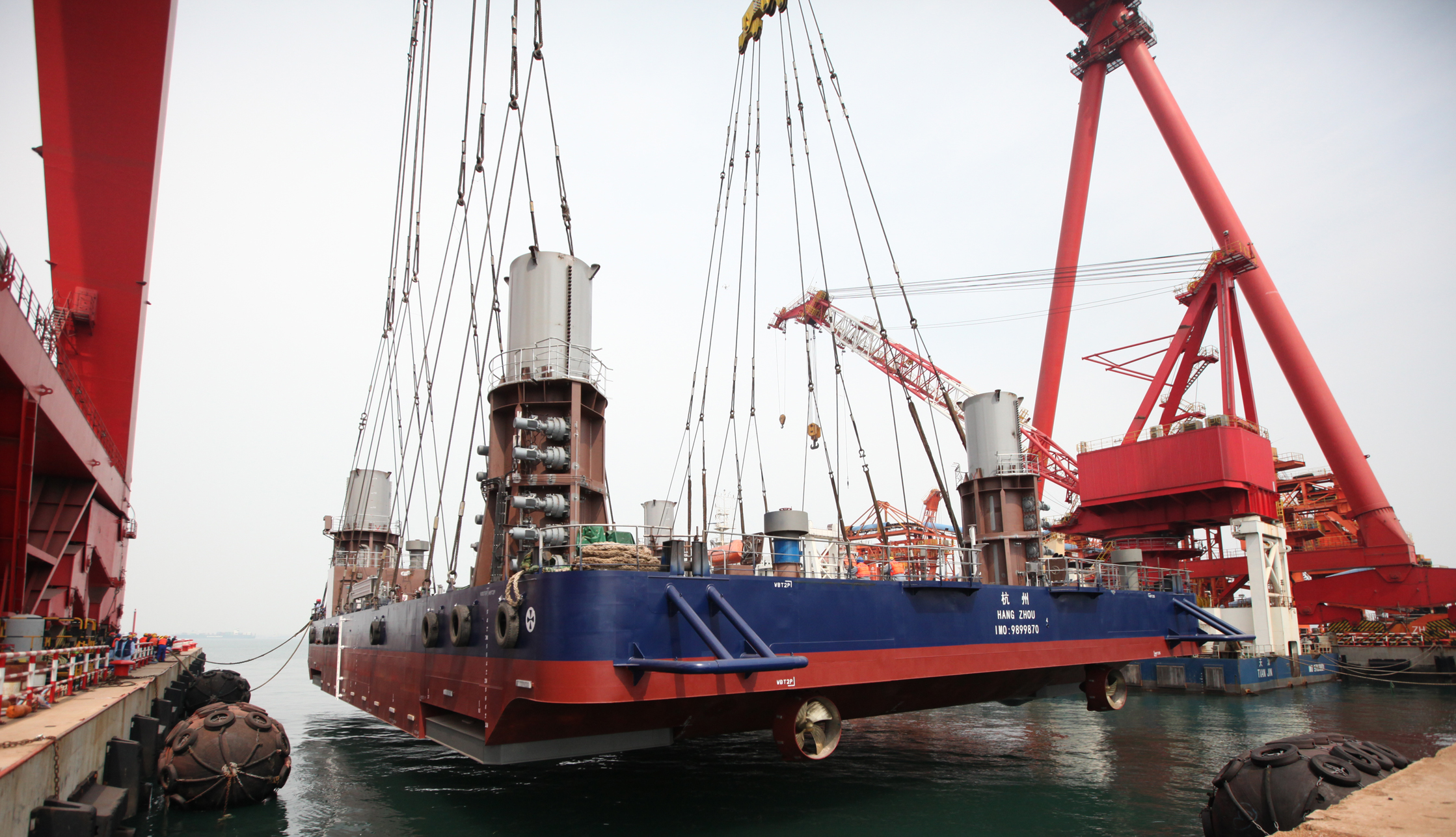 3月31日,海西重機(jī)承接的華東院306自升式海上勘探平臺(tái)順利完成吊裝下水,標(biāo)志著該項(xiàng)目順利完成下水大節(jié)點(diǎn)。