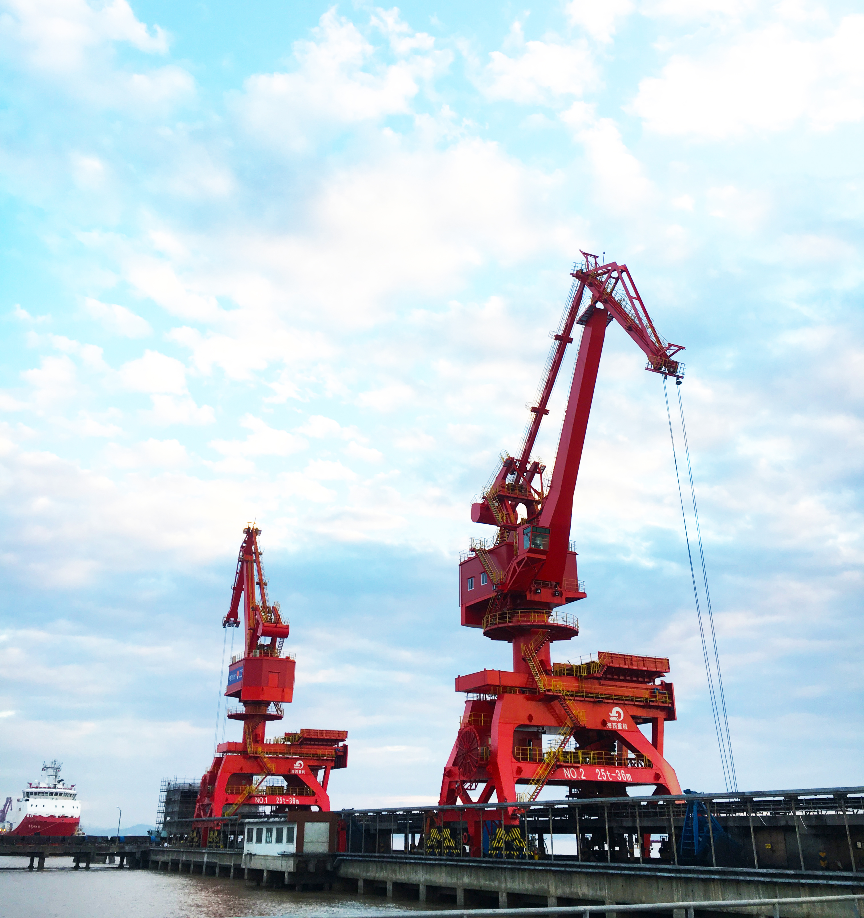 5月12日,武漢船機(jī)海西重機(jī)為寧波舟山港老塘山碼頭打造的2臺(tái)25T-36M帶斗門機(jī)順利交付。