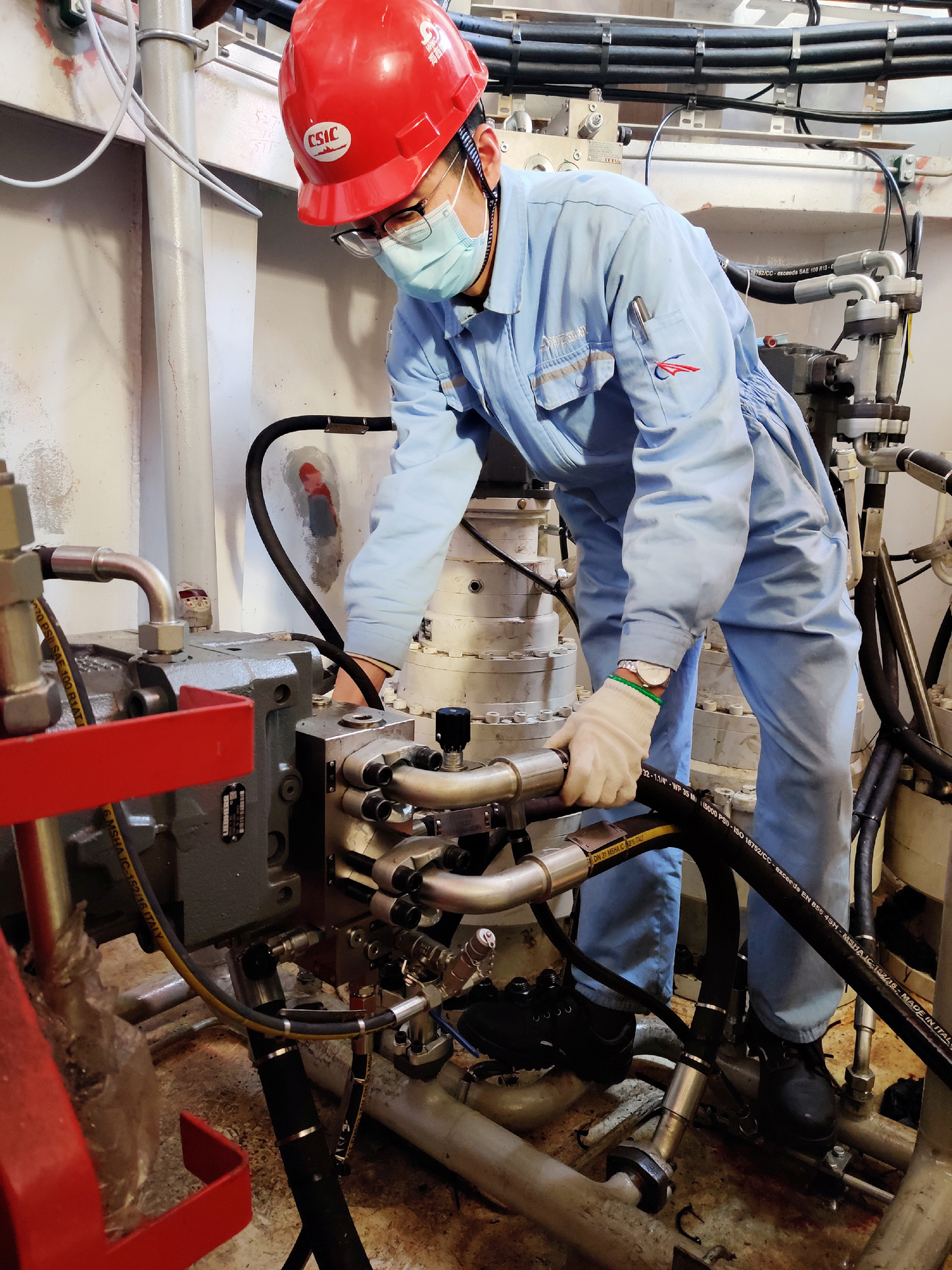 從管路預(yù)制,泵壓試驗,酸洗串油,到管路復(fù)裝,張偉康總是在馮鵬超的傳幫帶下,分工合作,恰似黃金拍檔。在海工設(shè)備后期液壓系統(tǒng)調(diào)試的半個月中,他們和總部工程師一起,每天主動加班調(diào)試到深夜。由于產(chǎn)生液壓系統(tǒng)故障的可能性因素較多,排查起來較為困難,面對調(diào)試中發(fā)生的諸多難題,他們迎難而上,敢于擔(dān)當(dāng),認(rèn)真分析討論各種解決方案,并嚴(yán)格進(jìn)行逐一排查,最終完美解決了故障。張偉康新人得力,敢于主動擔(dān)當(dāng),堅守液壓潤滑陣地,為保證整個項目按時交付爭分奪秒。