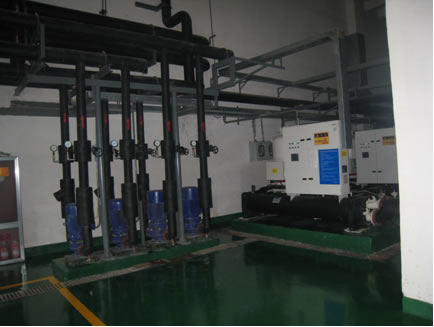 其工作原理是公司利用緊鄰黃海的地理優(yōu)勢,利用夏季時(-5米以下處)海水溫度在22℃左右(明顯低于戶外溫度),通過熱泵系統(tǒng)提取其中的能量差(5℃~6℃)用于辦公制冷;而冬季海水溫度5℃左右(明顯高于戶外溫),仍然通過熱泵系統(tǒng)提取其中的能量差(2℃~3℃),實現(xiàn)供暖或供熱水的功能。同時,利用公司空壓機站的循環(huán)冷卻水(夏季冷卻水溫約40℃,冬季冷卻水溫約22℃),通過熱泵系統(tǒng)實現(xiàn)常年提供洗浴熱水(45℃左右)的能力。