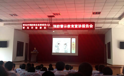 宣講團成員以近年來青島市檢察機關(guān)查辦的典型國企職務(wù)犯罪案件為切入點,從不同角度分析了職務(wù)犯罪產(chǎn)生的主客觀原因和突出特點,剖析了職務(wù)犯罪給國家、集體和個人帶來的嚴(yán)重危害,并提出有針對性的預(yù)防對策和建議,突出“用身邊案例教育身邊人”的警示目的。